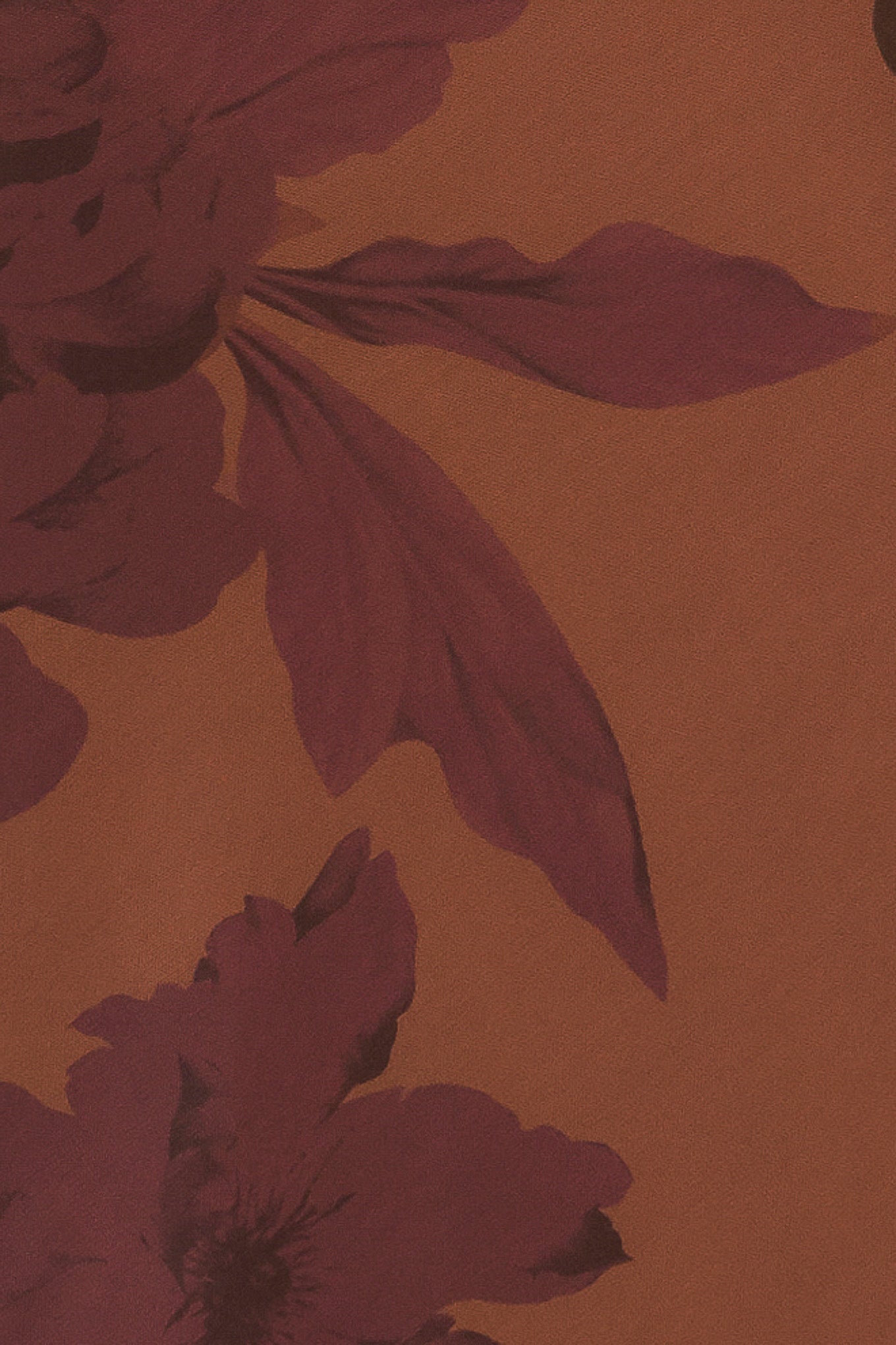 A printed power mesh midi dress featuring long sleeve, side shirring and back zipper closure