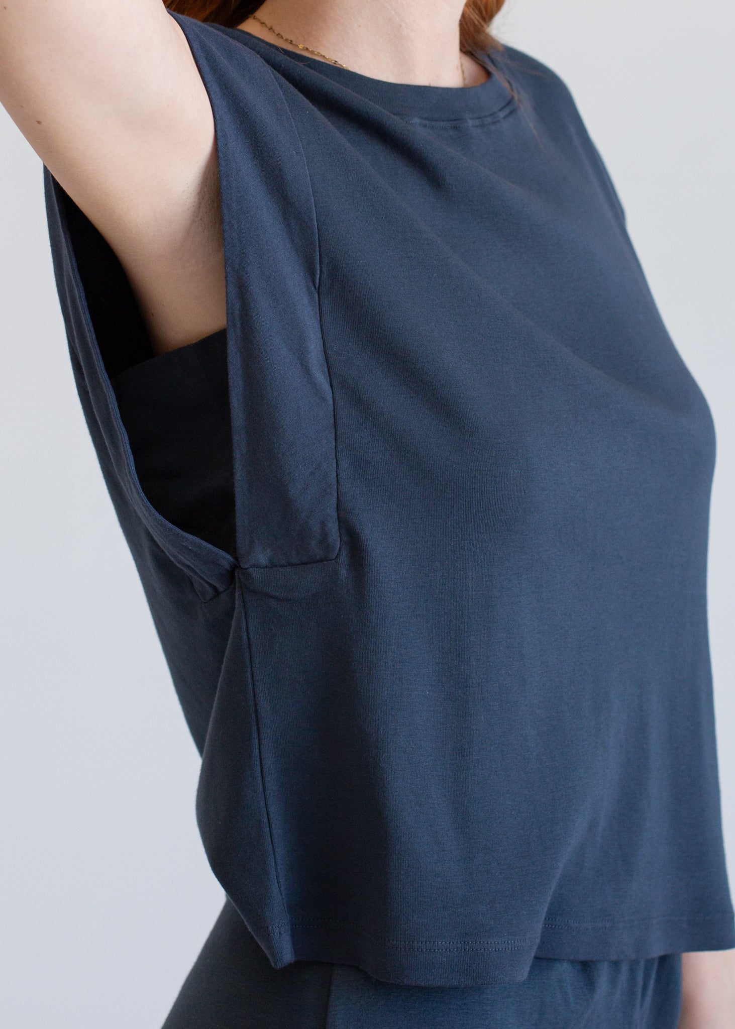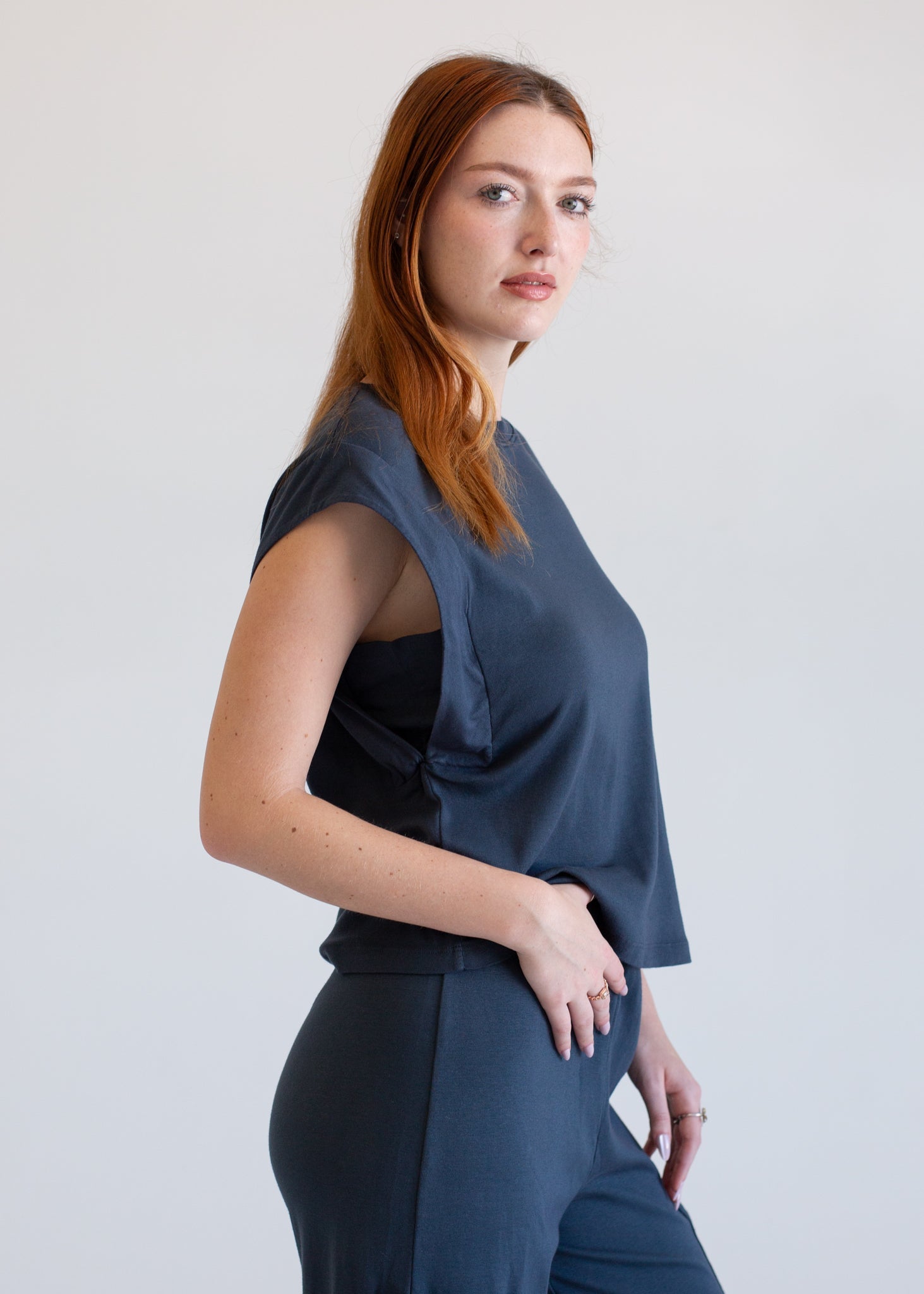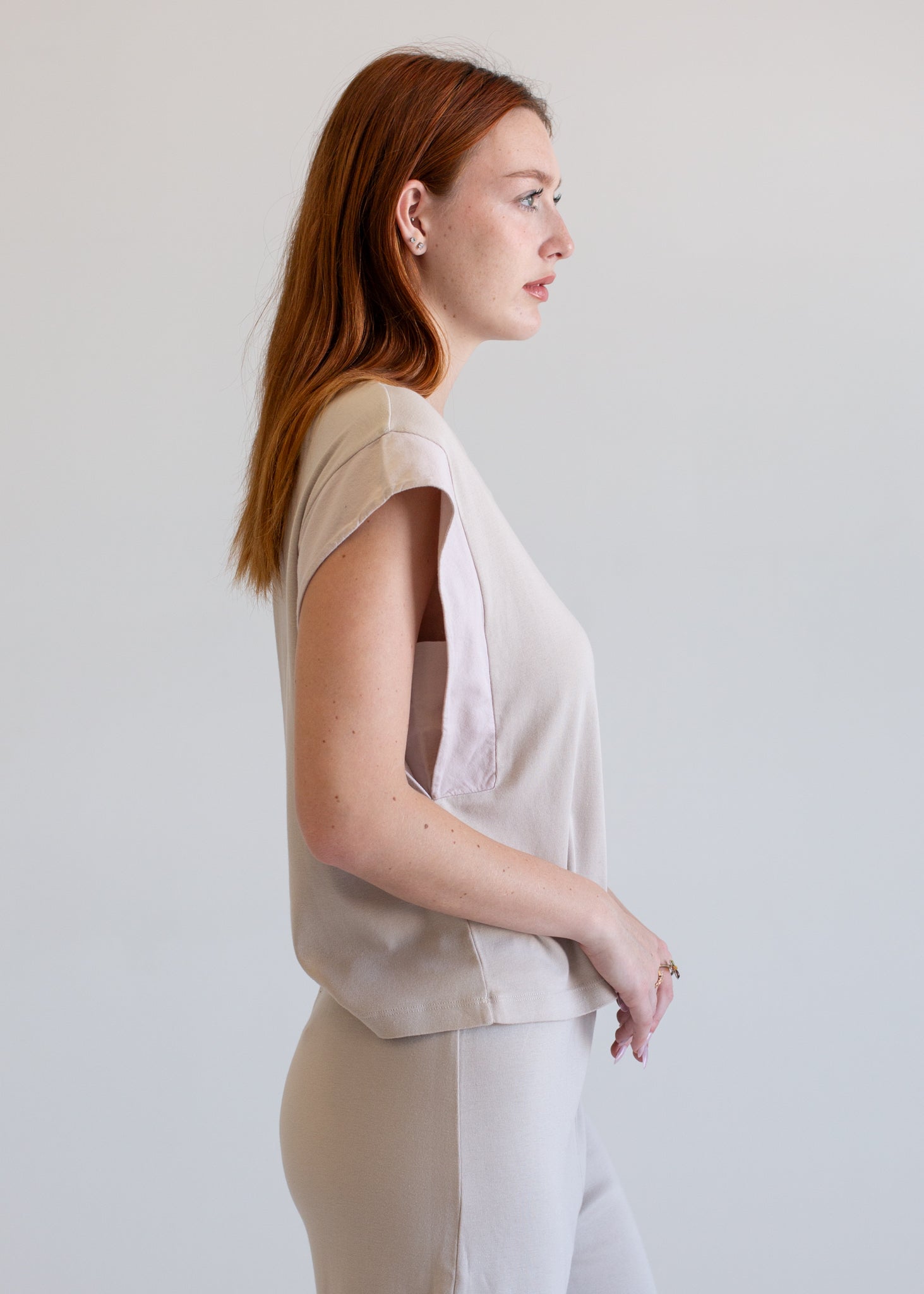 Love the Cool Girl Tank? Meet its revamped second iteration, the Cool Girl Shirt! Features contrasting fabric and a slightly longer sleeve and bottom hem than the Cool Girl Tank. Still perfect for lounging, working out, or a day out! Pair with the Cool Girl Pant for the whole look.