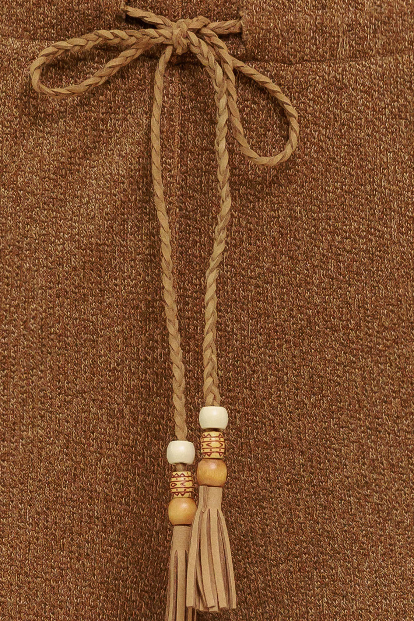A solid knit pant featuring elasticized waist, flare leg and tassel tie. Matching top IT13842