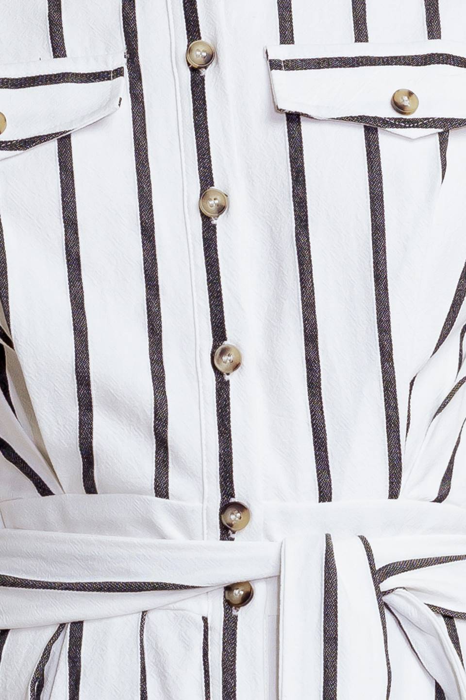 A striped woven midi dress featuring collar, sleeveless, button down, front pocket, self sash tie and full circle skirt